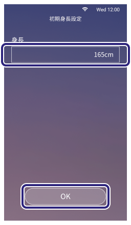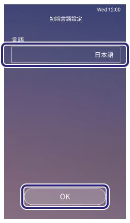 使用するタイムゾーン(時間帯)を選び、日時を設定して、[OK]ボタンをタッチします。