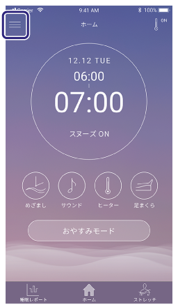 (メニュー)をタッチすると、以下のアプリ用メニューが表示されます。