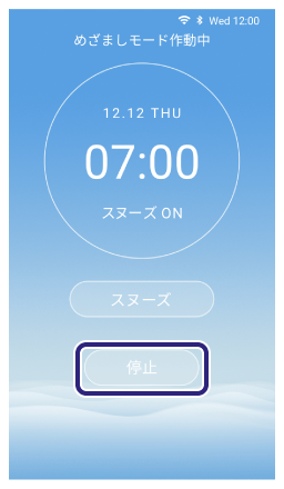 起床したら[停止]をタッチします。