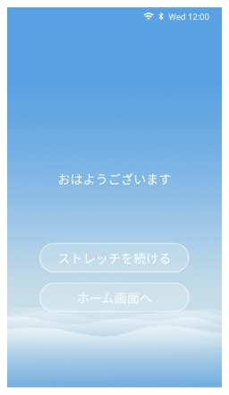 [ストレッチを続ける]をタッチすると、引き続きモーニングストレッチが始まり、コース実行中画面が表示されます。[ホーム画面へ]をタッチするとめざましモードを終了し、ホーム画面が表示されます。