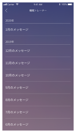 睡眠トレーナー一覧画面でご覧になりたいメッセージをタッチすると、トレーナーからのメッセージが表示されます。