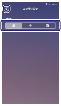 (メニュー)>[設定]>[エア強さ設定]をタッチします。