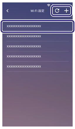 (更新)をタッチしてリストを更新するか、[+]をタッチしてネットワークを追加します。 -