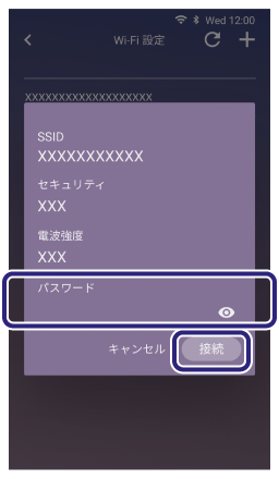 ネットワークのパスワードを入力して[接続]をタッチします。