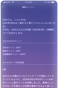 睡眠中に取得した睡眠データから、AIが、あなたに応じたコメントをしてくれます。