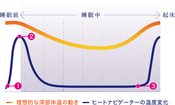 「ヒートナビゲーター」では、入眠時に体を温めることで、「深部体温」の放熱をサポート。
